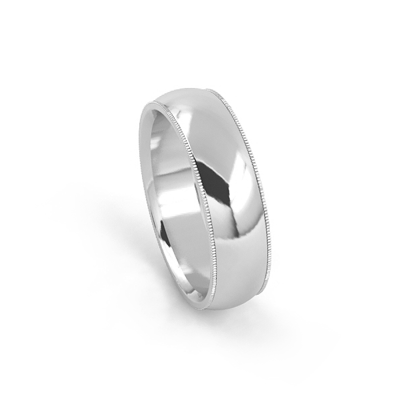 14K WHITE 6MM MILGRAIN LIGHT COMFORT FIT