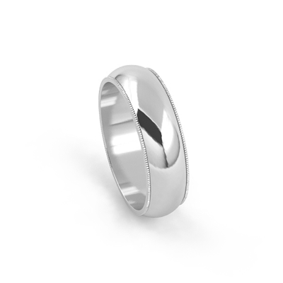 14K WHITE 6MM MILGRAIN COMFORT FIT